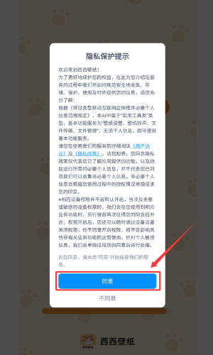 1、在主界面,點(diǎn)擊紅框箭頭指向的同意按鈕,完成隱私確認(rèn)。