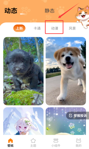 2、在靜態(tài)界面,點(diǎn)擊紅框標(biāo)注的動(dòng)漫分類,瀏覽靜態(tài)壁紙。