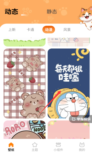 3、在動(dòng)態(tài)界面,選擇紅框標(biāo)注的哆啦A夢(mèng)壁紙,點(diǎn)擊進(jìn)行設(shè)置。